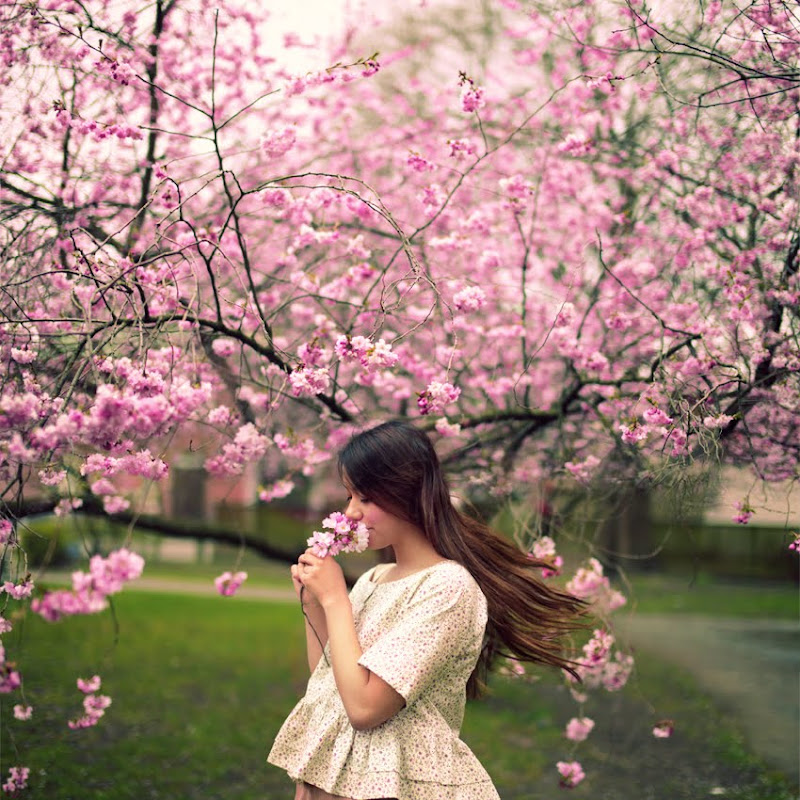 Det här är min vän Lisa Marie. Vi gick till körsbärsträdet vid Svingeln förra veckan för att fota. Det är inte mycket som är så vackert under våren som det här!